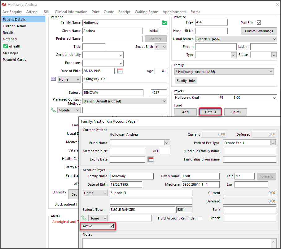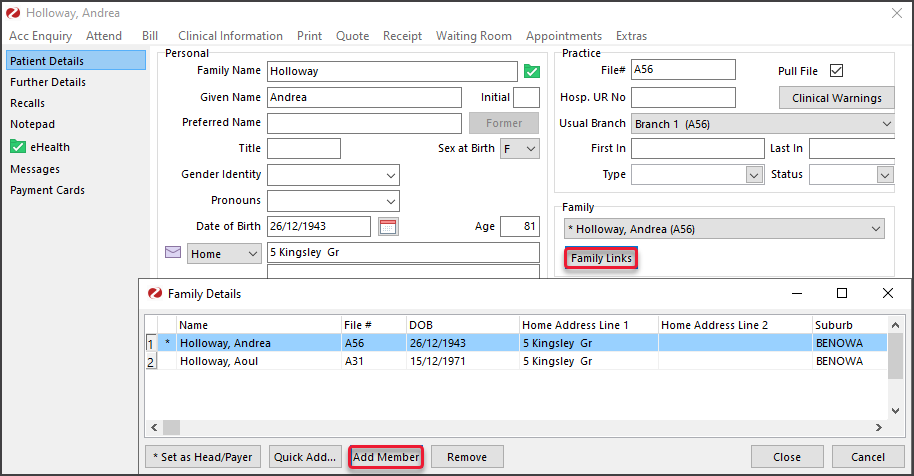 A dialog will ask if you want to copy the family member's address and Medicare details. - Select Close to save and exit.