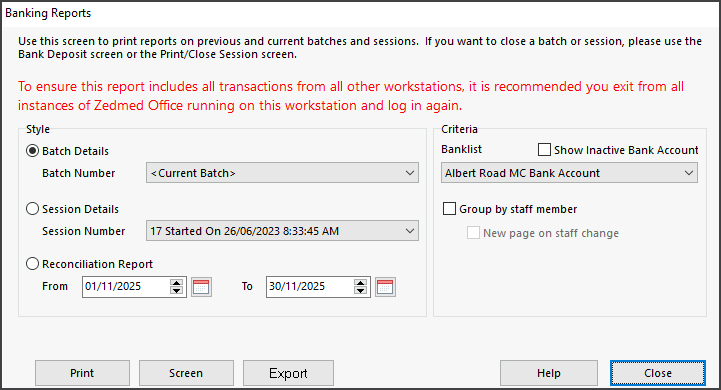 Step 1 – Review and Print Banking Report