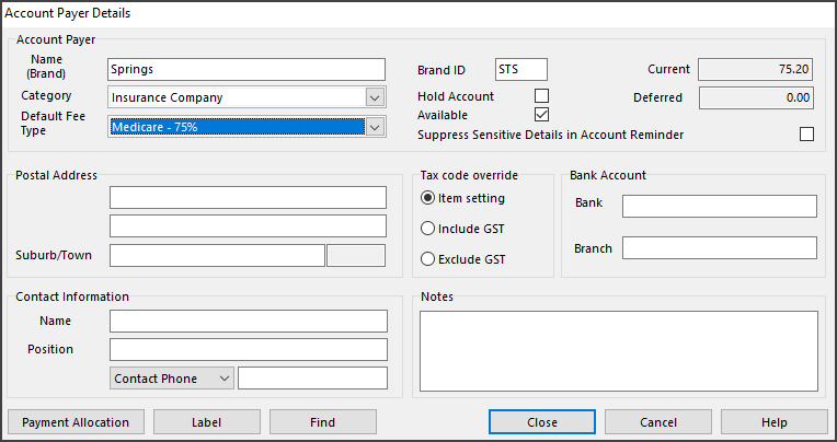 Before adding the payer, make sure you have set up their Item Fee Codes. To learn more, see the fees articles.