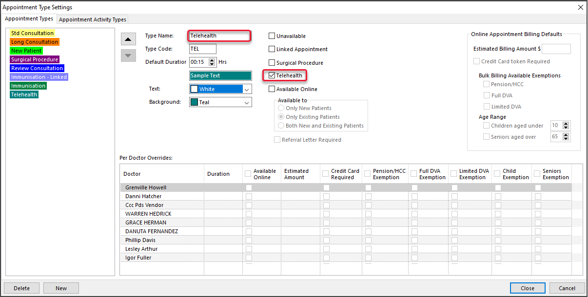 - Select Practice Setup > Appointments > Appointment Type Settings.