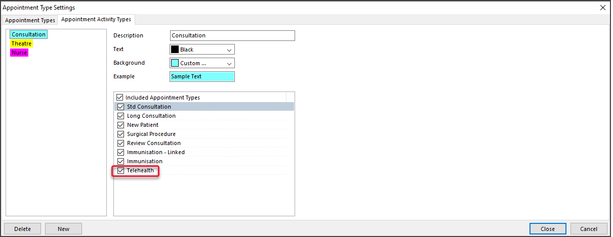 This allows the Telehealth appointment to be booked in the time slot scheduled for that Activity in the Appointment Grid. - Select Close to save and exit.